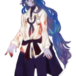 狂気が加速し、またUGNから貸し与えられた服として喪服のようなスーツとレインコートを希望した。一応雨を降らすエフェクトを使用するための利便性もある。幼稚園児のようなレインコートを着ることでのアンバランスさはキャンペーン通して支離滅裂な理性の本編を表明していたかもしれない。スコップは使わなかったけどPC2を殺すために持ち込んでます。 レインコートを脱ぎ棄て、窮屈なスーツも脱いでラフな格好になった。最後の断髪差分は、日程の途中で急遽作ったもの。戦闘差分はもっと落ち着いてても良かったかな。これを描いたときはもっと錯乱していると思ったんですよね。 |