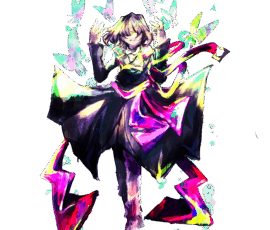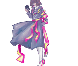 ・性別不祥な雰囲気に。ヒールでさりげなくお姉さんアピール。 ・配色は髪色含めて地味目。その分オーダーのネオンカラーは派手に。 ・動きの少ない役割(支援)だとわかっていたので、立っているだけでも華になるようなデザインに。 ・戦闘差分は演出で蝶をよく使っていたのでそれをベースに。 ・PCへの持ち込み設定で培養槽と縁があったので緑の泡をさりげなく取り込んでいます。
