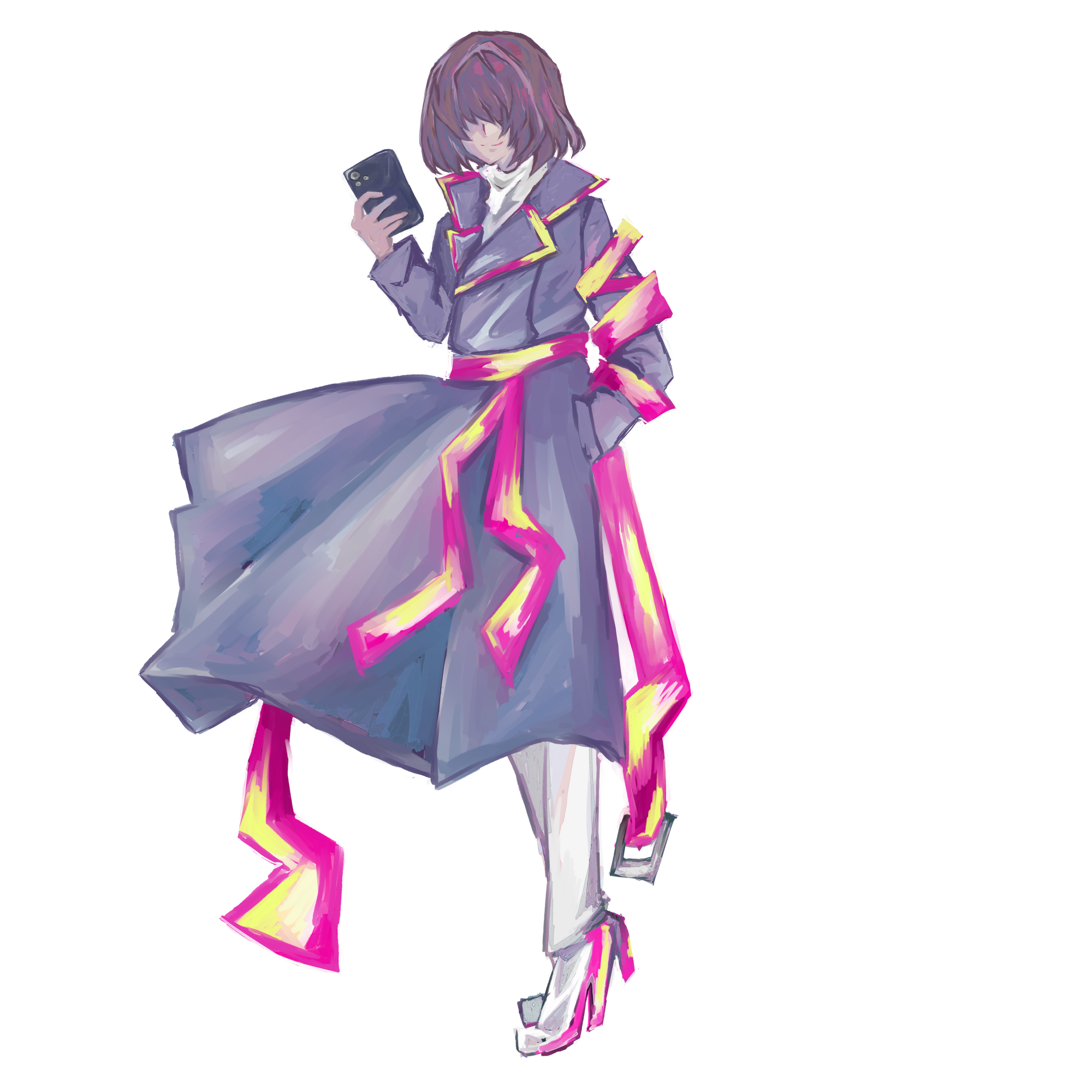 ・いただいたイメージやキーワード 「両メカクレ」「片手に常にスマホ」「明度の低い上着にネオンカラーがアクセントではいっている」 北国での紛争地帯での活動、槍が鎌の形状になる、シナリオ指定での黒曜石の指輪、など。